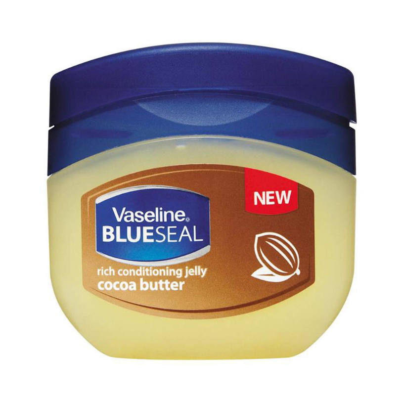 Vaseline® Blue Seal Cocoa Butter Petroleum Jelly provides intense moisture and helps guard against dryness.